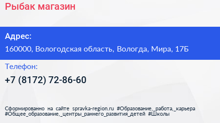 Рыбак, магазин по адресу 160000, Вологодская область, Вологда, Мира, 17Б в дальнейшем Организация, размещена в следующих категориях: