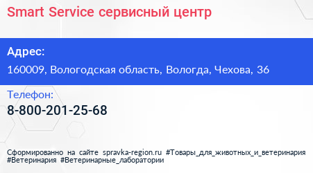 Smart Service, сервисный центр по адресу 160009, Вологодская область, Вологда, Чехова, 36 в дальнейшем Организация, размещена в следующих категориях: