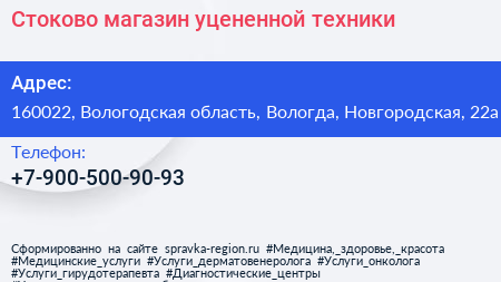 Стоково, магазин уцененной техники по адресу 160022, Вологодская область, Вологда, Новгородская, 22а в дальнейшем Организация, размещена в следующих категориях: