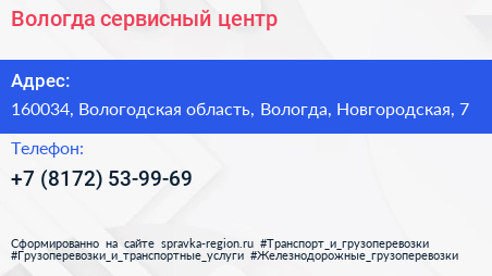 Вологда, сервисный центр по адресу 160034, Вологодская область, Вологда, Новгородская, 7 в дальнейшем Организация, размещена в следующих категориях: