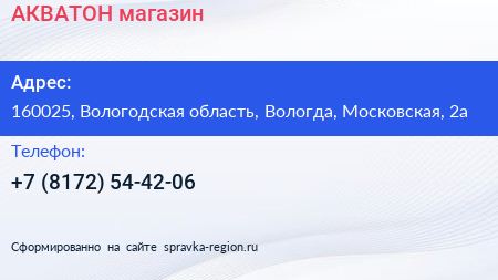 АКВАТОН, магазин по адресу 160025, Вологодская область, Вологда, Московская, 2а в дальнейшем Организация, размещена в следующих категориях: