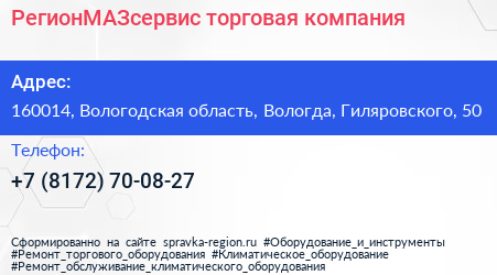 РегионМАЗсервис, торговая компания по адресу 160014, Вологодская область, Вологда, Гиляровского, 50 в дальнейшем Организация, размещена в следующих категориях: