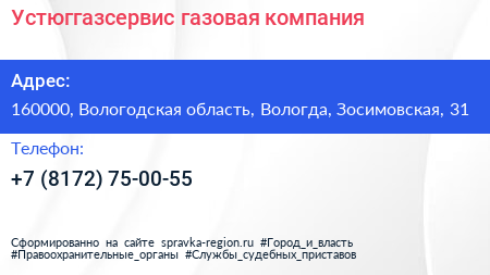 Устюггазсервис, газовая компания по адресу 160000, Вологодская область, Вологда, Зосимовская, 31 в дальнейшем Организация, размещена в следующих категориях: