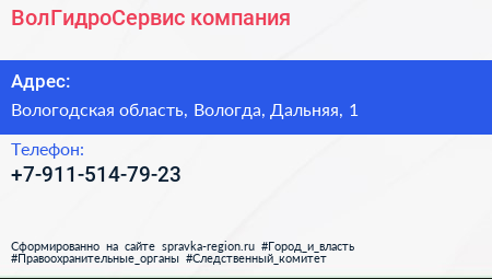 ВолГидроСервис, компания по адресу Вологодская область, Вологда, Дальняя, 1 в дальнейшем Организация, размещена в следующих категориях: