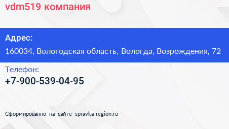 vdm519, компания по адресу 160034, Вологодская область, Вологда, Возрождения, 72 в дальнейшем Организация, размещена в следующих категориях: