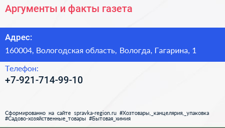 Аргументы и факты, газета по адресу 160004, Вологодская область, Вологда, Гагарина, 1 в дальнейшем Организация, размещена в следующих категориях: