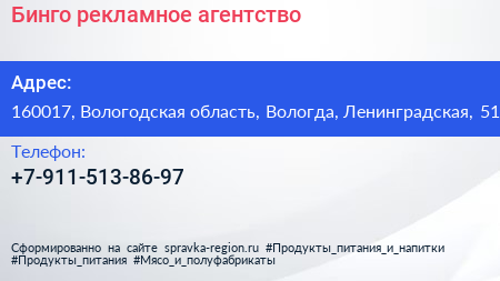 Бинго, рекламное агентство по адресу 160017, Вологодская область, Вологда, Ленинградская, 51 в дальнейшем Организация, размещена в следующих категориях: