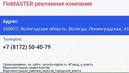 FloMASTER, рекламная компания по адресу 160017, Вологодская область, Вологда, Ленинградская, 61 в дальнейшем Организация, размещена в следующих категориях: