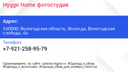 Hygge Home, фотостудия по адресу 160000, Вологодская область, Вологда, Вологодская слобода, 6а в дальнейшем Организация, размещена в следующих категориях: