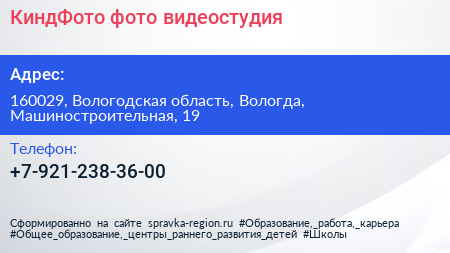КиндФото, фото-видеостудия по адресу 160029, Вологодская область, Вологда, Машиностроительная, 19 в дальнейшем Организация, размещена в следующих категориях: