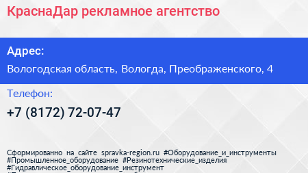 КраснаДар, рекламное агентство по адресу Вологодская область, Вологда, Преображенского, 4 в дальнейшем Организация, размещена в следующих категориях: