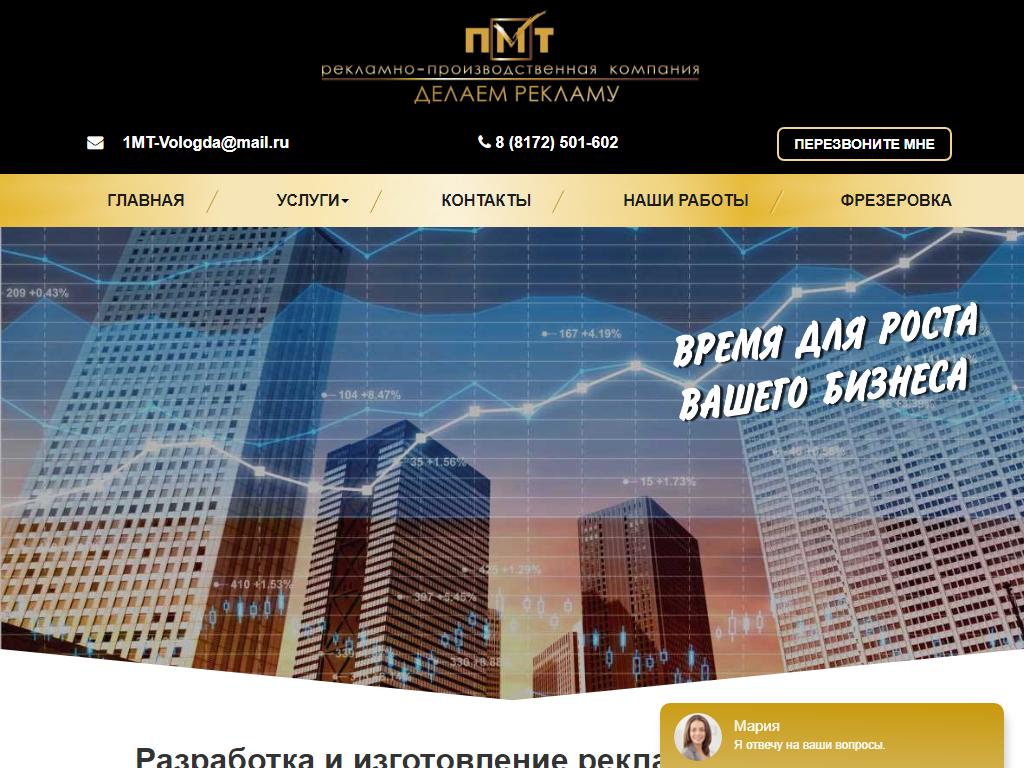 ПМТ-ДЕЛАЕМ РЕКЛАМУ, рекламно-производственная компания по адресу 160004, Вологодская область, Вологда, Маяковского, 42 в дальнейшем Организация, размещена в следующих категориях: