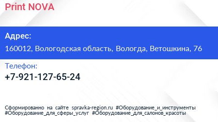 Print NOVA по адресу 160012, Вологодская область, Вологда, Ветошкина, 76 в дальнейшем Организация, размещена в следующих категориях: