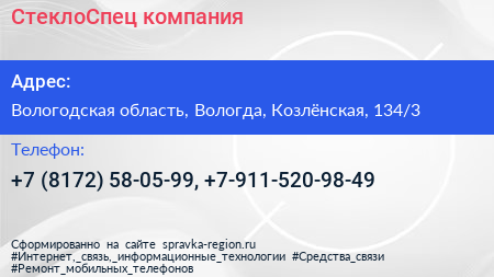 СтеклоСпец, компания по адресу Вологодская область, Вологда, Козлёнская, 134/3 в дальнейшем Организация, размещена в следующих категориях: