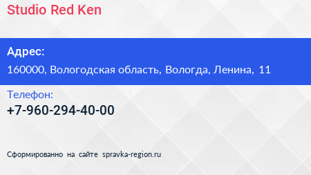 Studio Red Ken по адресу 160000, Вологодская область, Вологда, Ленина, 11 в дальнейшем Организация, размещена в следующих категориях: