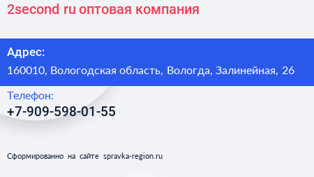 2second.ru, оптовая компания по адресу 160010, Вологодская область, Вологда, Залинейная, 26 в дальнейшем Организация, размещена в следующих категориях:
