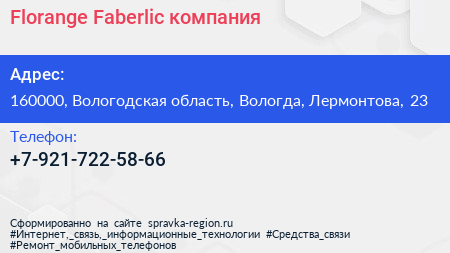 Florange-Faberlic, компания по адресу 160000, Вологодская область, Вологда, Лермонтова, 23 в дальнейшем Организация, размещена в следующих категориях: