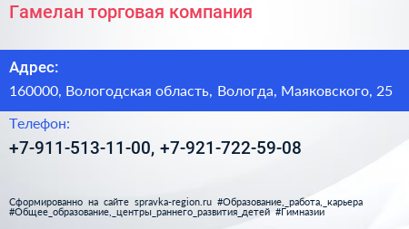 Гамелан, торговая компания по адресу 160000, Вологодская область, Вологда, Маяковского, 25 в дальнейшем Организация, размещена в следующих категориях: