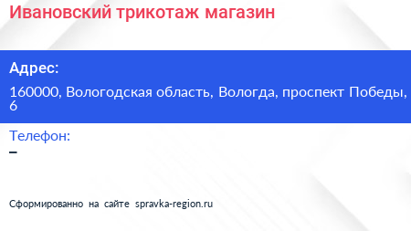 Ивановский трикотаж, магазин по адресу 160000, Вологодская область, Вологда, проспект Победы, 6 в дальнейшем Организация, размещена в следующих категориях:
