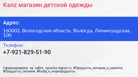 Kanz, магазин детской одежды по адресу 160002, Вологодская область, Вологда, Ленинградская, 100 в дальнейшем Организация, размещена в следующих категориях: