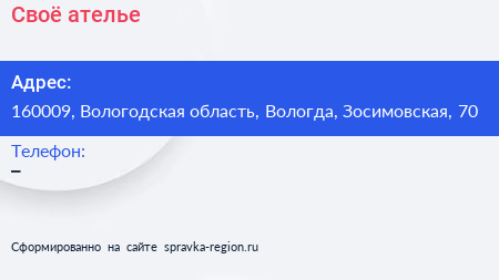 Своë ателье по адресу 160009, Вологодская область, Вологда, Зосимовская, 70 в дальнейшем Организация, размещена в следующих категориях: