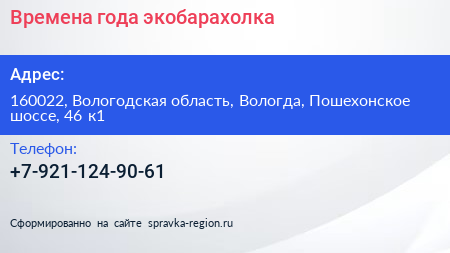 Времена года, экобарахолка по адресу 160022, Вологодская область, Вологда, Пошехонское шоссе, 46 к1 в дальнейшем Организация, размещена в следующих категориях: