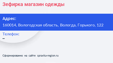 Зефирка, магазин одежды по адресу 160014, Вологодская область, Вологда, Горького, 122 в дальнейшем Организация, размещена в следующих категориях: