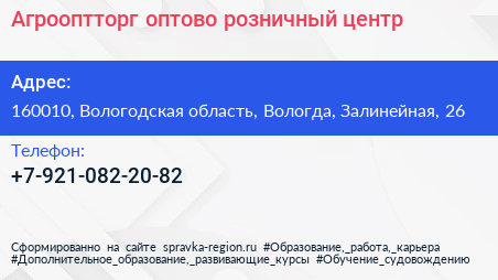 Агрооптторг, оптово-розничный центр по адресу 160010, Вологодская область, Вологда, Залинейная, 26 в дальнейшем Организация, размещена в следующих категориях: