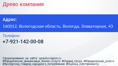 Древо, компания по адресу 160012, Вологодская область, Вологда, Элеваторная, 43 в дальнейшем Организация, размещена в следующих категориях: