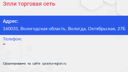 Элли, торговая сеть по адресу 160031, Вологодская область, Вологда, Октябрьская, 27Б в дальнейшем Организация, размещена в следующих категориях: