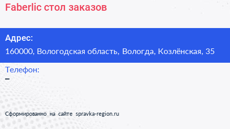 Faberlic, стол заказов по адресу 160000, Вологодская область, Вологда, Козлёнская, 35 в дальнейшем Организация, размещена в следующих категориях: