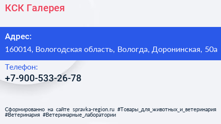 КСК Галерея по адресу 160014, Вологодская область, Вологда, Доронинская, 50а в дальнейшем Организация, размещена в следующих категориях: