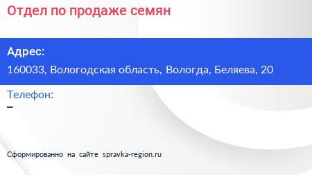 Отдел по продаже семян по адресу 160033, Вологодская область, Вологда, Беляева, 20 в дальнейшем Организация, размещена в следующих категориях: