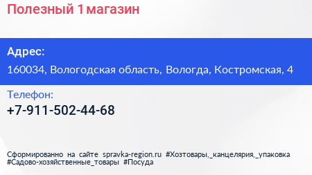 Полезный №1, магазин по адресу 160034, Вологодская область, Вологда, Костромская, 4 в дальнейшем Организация, размещена в следующих категориях: