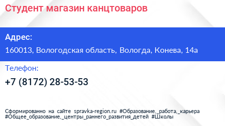 Студент, магазин канцтоваров по адресу 160013, Вологодская область, Вологда, Конева, 14а в дальнейшем Организация, размещена в следующих категориях: