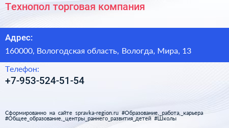 Технопол, торговая компания по адресу 160000, Вологодская область, Вологда, Мира, 13 в дальнейшем Организация, размещена в следующих категориях: