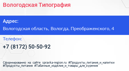 Вологодская Типография по адресу Вологодская область, Вологда, Преображенского, 4 в дальнейшем Организация, размещена в следующих категориях: