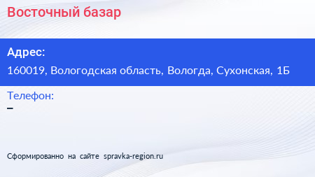 Восточный базар по адресу 160019, Вологодская область, Вологда, Сухонская, 1Б в дальнейшем Организация, размещена в следующих категориях: