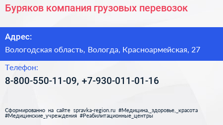Буряков, компания грузовых перевозок по адресу Вологодская область, Вологда, Красноармейская, 27 в дальнейшем Организация, размещена в следующих категориях: