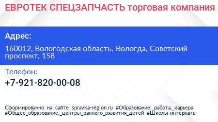 ЕВРОТЕК-СПЕЦЗАПЧАСТЬ, торговая компания по адресу 160012, Вологодская область, Вологда, Советский проспект, 158 в дальнейшем Организация, размещена в следующих категориях:
