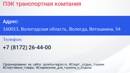 ПЭК, транспортная компания по адресу 160011, Вологодская область, Вологда, Ветошкина, 54 в дальнейшем Организация, размещена в следующих категориях: