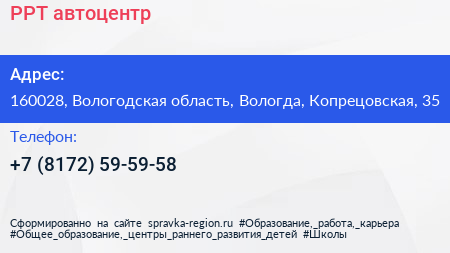 РРТ, автоцентр по адресу 160028, Вологодская область, Вологда, Копрецовская, 35 в дальнейшем Организация, размещена в следующих категориях: