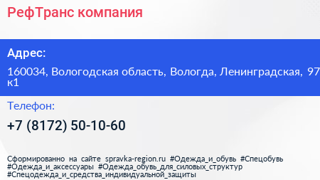 РефТранс, компания по адресу 160034, Вологодская область, Вологда, Ленинградская, 97 к1 в дальнейшем Организация, размещена в следующих категориях: