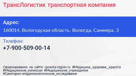 ТрансЛогистик, транспортная компания по адресу 160014, Вологодская область, Вологда, Саммера, 3 в дальнейшем Организация, размещена в следующих категориях: