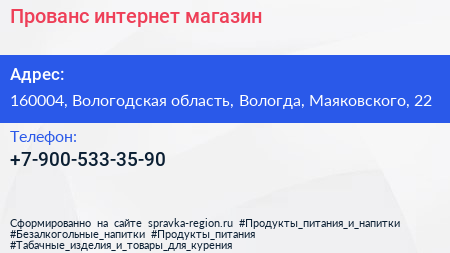 Прованс, интернет-магазин по адресу 160004, Вологодская область, Вологда, Маяковского, 22 в дальнейшем Организация, размещена в следующих категориях: