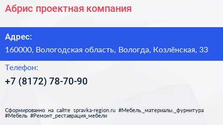 Абрис, проектная компания по адресу 160000, Вологодская область, Вологда, Козлёнская, 33 в дальнейшем Организация, размещена в следующих категориях: