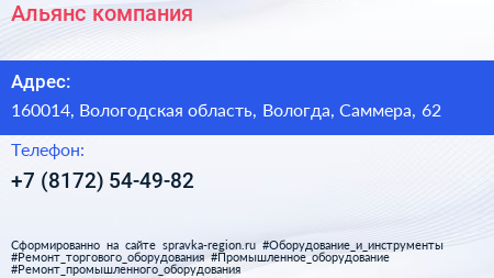 Альянс, компания по адресу 160014, Вологодская область, Вологда, Саммера, 62 в дальнейшем Организация, размещена в следующих категориях: