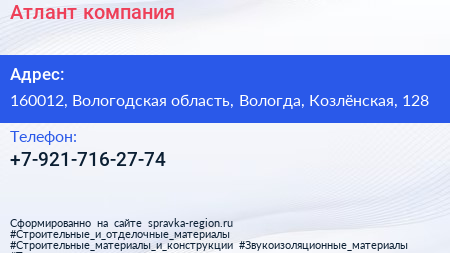 Атлант, компания по адресу 160012, Вологодская область, Вологда, Козлёнская, 128 в дальнейшем Организация, размещена в следующих категориях: