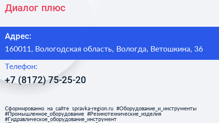 Диалог-плюс по адресу 160011, Вологодская область, Вологда, Ветошкина, 36 в дальнейшем Организация, размещена в следующих категориях: