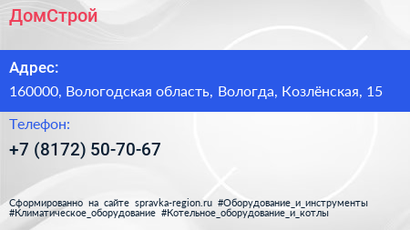 ДомСтрой по адресу 160000, Вологодская область, Вологда, Козлёнская, 15 в дальнейшем Организация, размещена в следующих категориях: